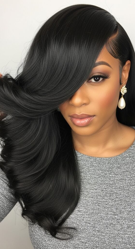 Focus on intense hydration before the press and use a heat protectant. The goal is swingy, shiny hair that looks naturally straight and incredibly healthy—not flat or over-processed.