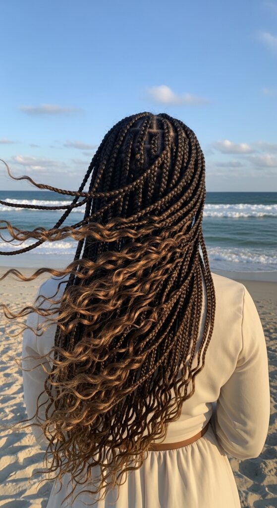 This adds movement, softness, and a romantic feel to a classic protective style. They’re lighter than full braids and have a beautiful, flowing effect when you walk.