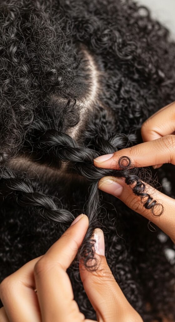 Start on freshly washed and conditioned hair. Use your favorite leave-in and cream. The key is to make sure each twist is smooth from root to end.