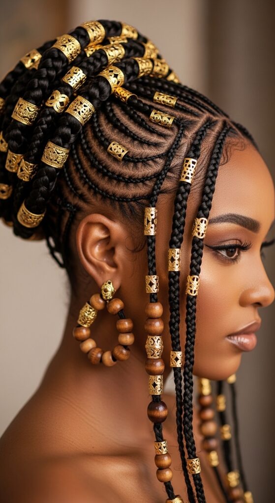 Add gold cuffs, wooden beads, or shells for that extra personal touch. This look is powerful, protective, and perfect for a month-long style that turns heads.