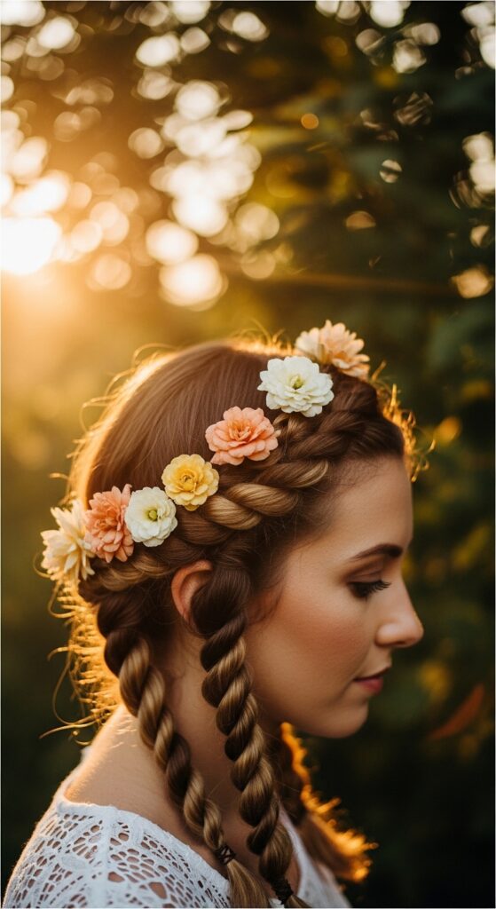 Style your twists or braids into soft, messy updos. Weave in a black satin ribbon or add some temporary dark color spray to the tips for a moody, ethereal vibe.