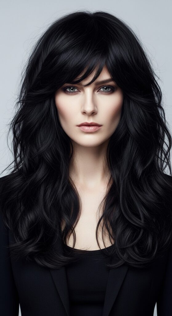 This cut adds instant movement and modern flair. Style it straight for a severe, fashion-forward look, or add loose waves for a softer feel. It frames the face beautifully.