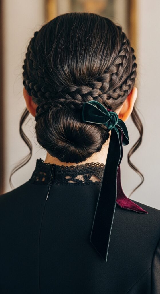 You can hint at romantic goth hairstyles in a corporate setting with dark, intricate details. Think a deep, rich hair color paired with a braided element. A simple three-strand braid incorporated into your low bun adds texture.
