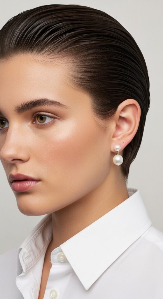 This trend has roots in old money hair and athletic chic, but it’s found a perfect home in the modern office. It’s polished to the extreme. Apply a generous amount of strong-hold gel or cream to damp hair.