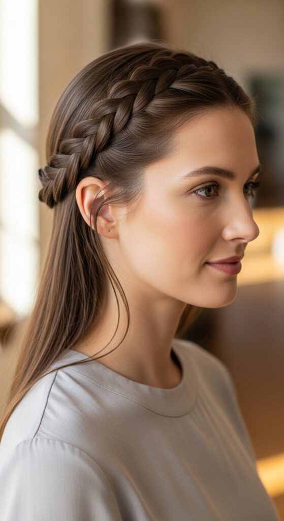 It keeps long hair looking neat and contained while adding a touch of artistry. This is a great trick for second-day hair that needs a refresh.