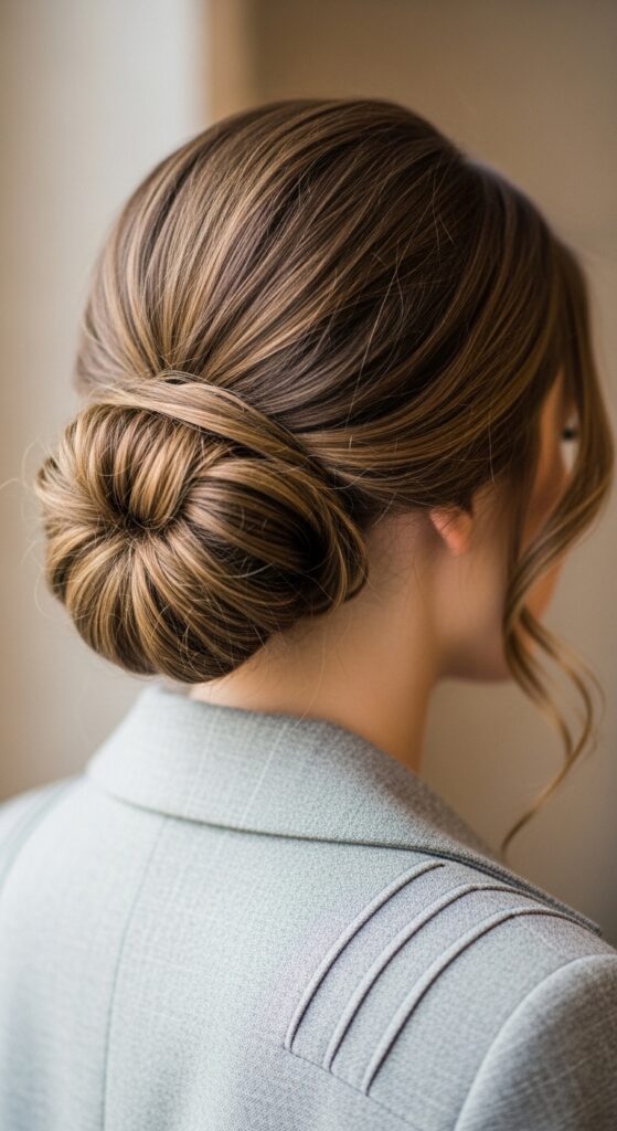 Elegant and utterly timeless, the low bun is a cornerstone of office professional hairstyles. It whispers quiet luxury and competence. This style works best on day-two hair for a little extra grip.
