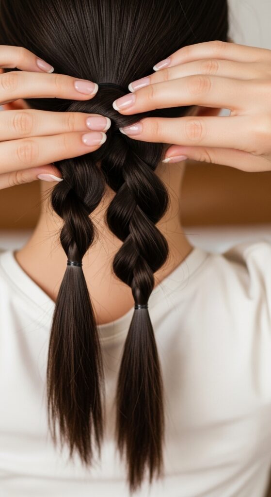 Then, twist those two already-twisted sections together around each other to the left. Secure the end with a clear elastic. It creates a beautiful, rope-like detail that looks braided but is simpler.