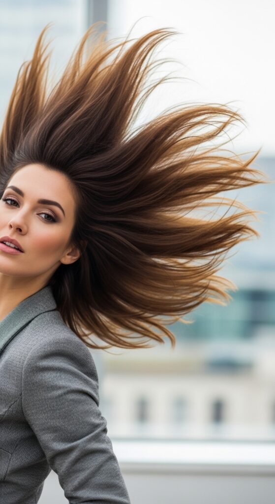 Nothing says “boss” like a professional blowout. The goal is sleekness with body, not frizz. Use a round brush, starting at the roots and pulling sections up and out to create lift.