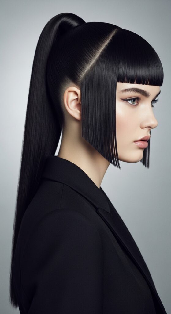 The ultimate in sleek, high-impact style. This look screams runway and red carpet. It’s bold, it’s clean, and it makes your features pop.