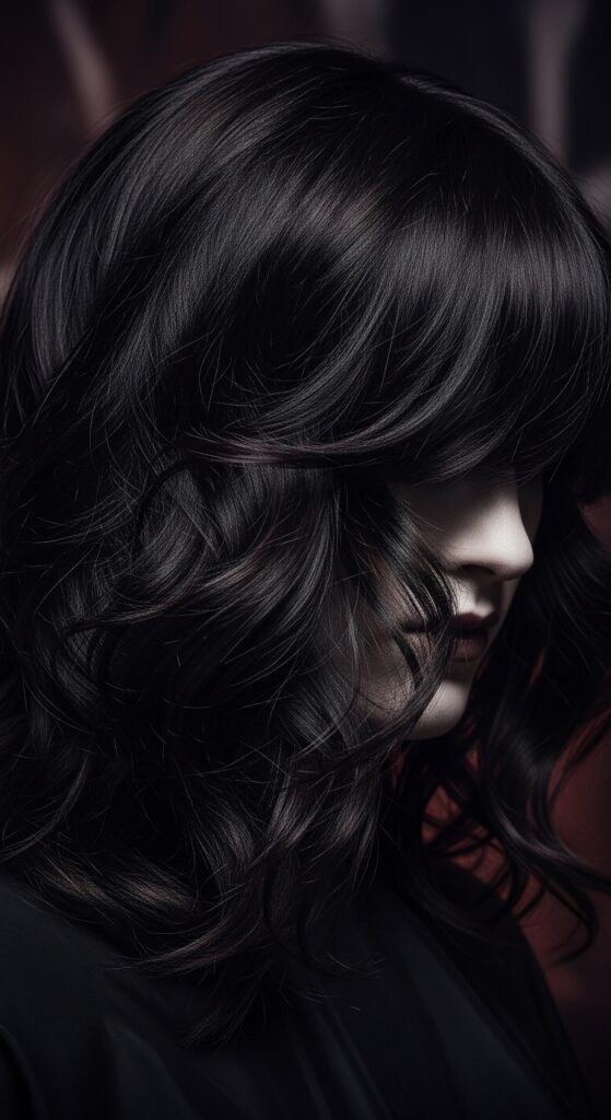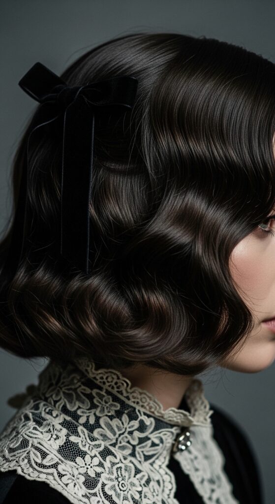 Romantic goth hairstyles are a huge trend. It’s about blending softness with edge. Think deep, moody waves, maybe with a dark floral accessory, for a poetic, vampire-esque vibe.