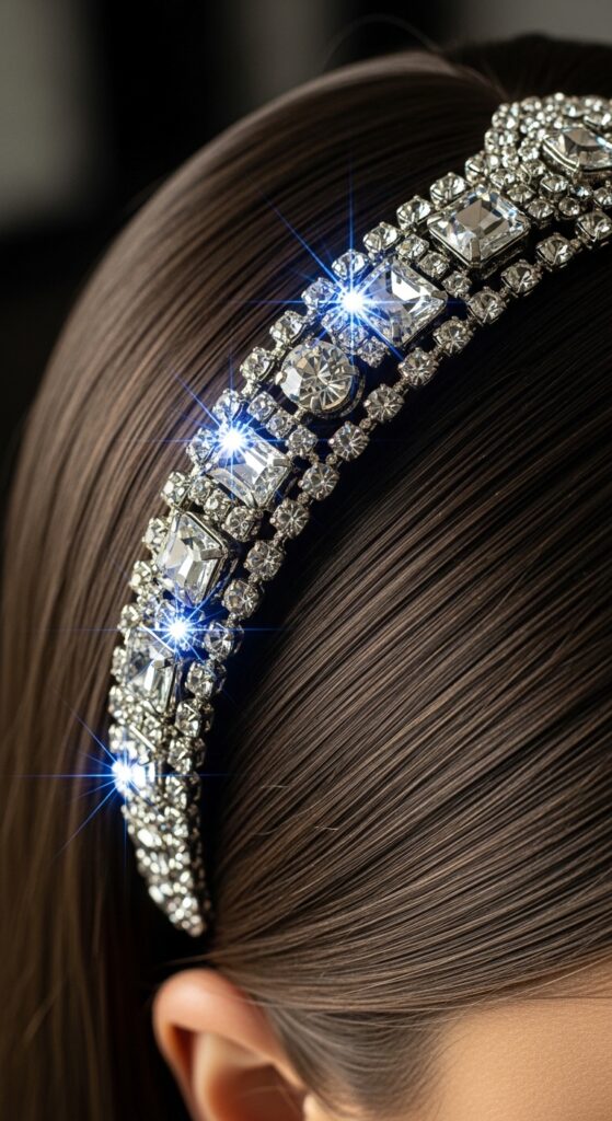 Sometimes, your hair is the perfect canvas for a show-stopping accessory. A dazzling headband, a line of crystal clips, or a single statement comb can transform a simple style.