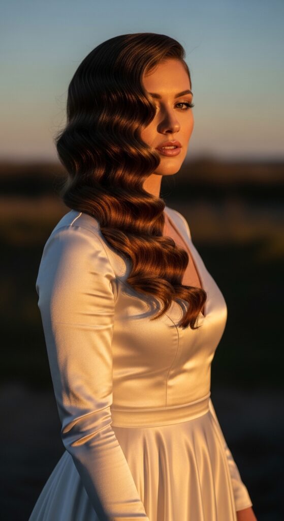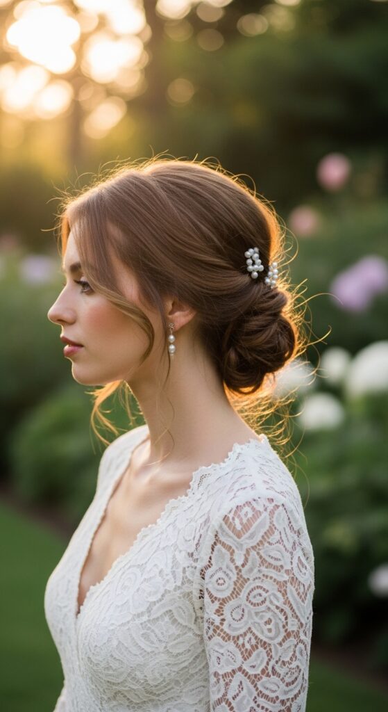 This style gives you the best of both worlds: the elegance of an updo and the romance of wearing your hair down. It’s perfect for showing off delicate earrings or a beautiful neckline.