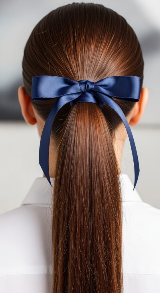 This trend is all about understated, quiet luxury hair. It looks expensive and polished without trying too hard. The silk ribbon adds a touch of timeless charm.