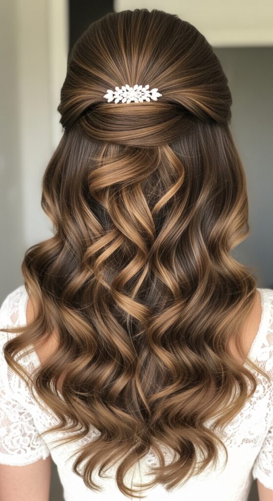 The trick is to treat the entire down portion as one big, beautiful tendril. Curl all your hair, then loosely pull back just the crown section. Let some pieces escape the clip immediately for that soft effect.