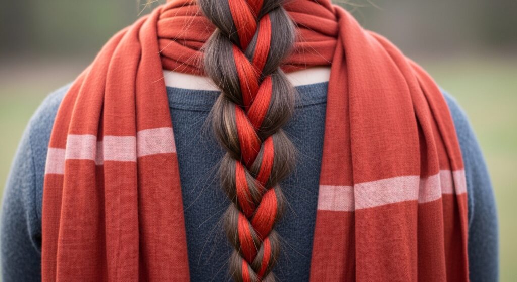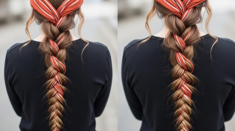 The Fishtail & Scarf Braid: Weave a thin scarf into a fishtail braid ponytail for incredible texture and color interplay.