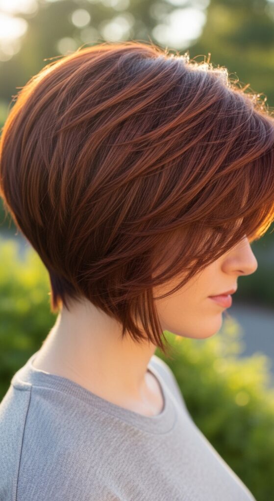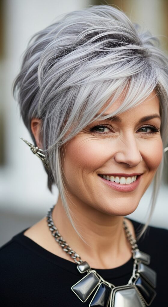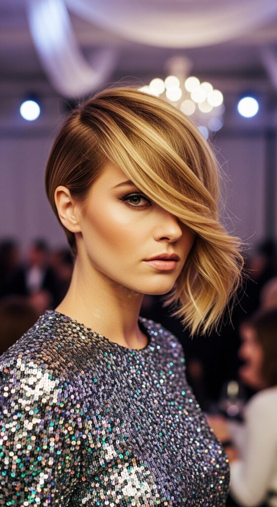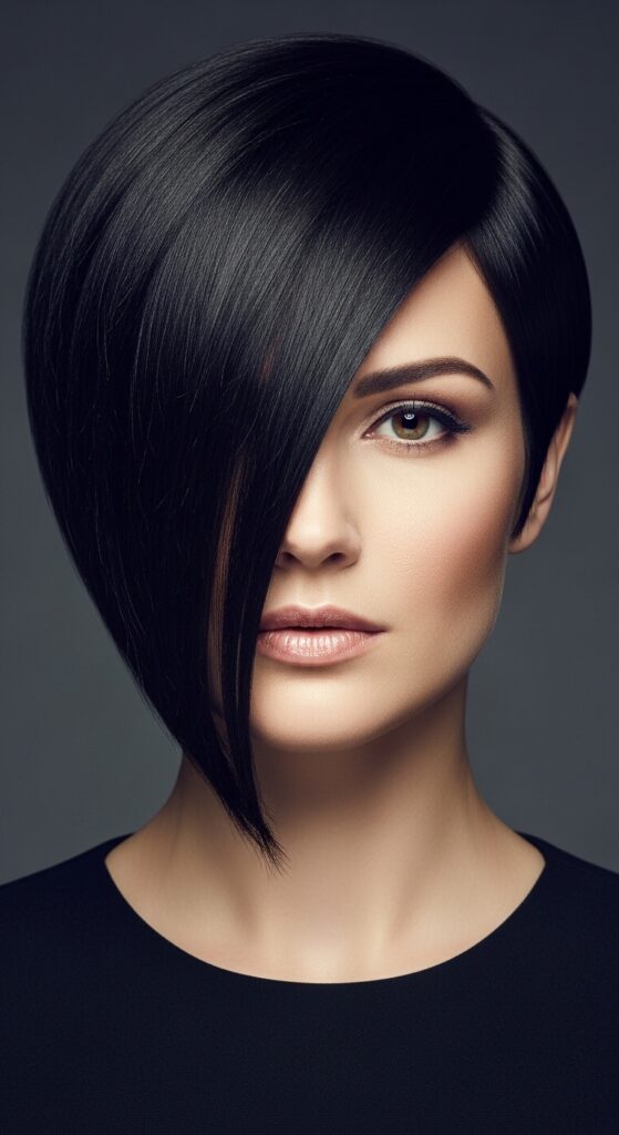 Elegant and face-framing, this style features longer layers on top that are swept dramatically to one side. It creates a beautiful, flowing line that elongates the neck and highlights your cheekbones.
