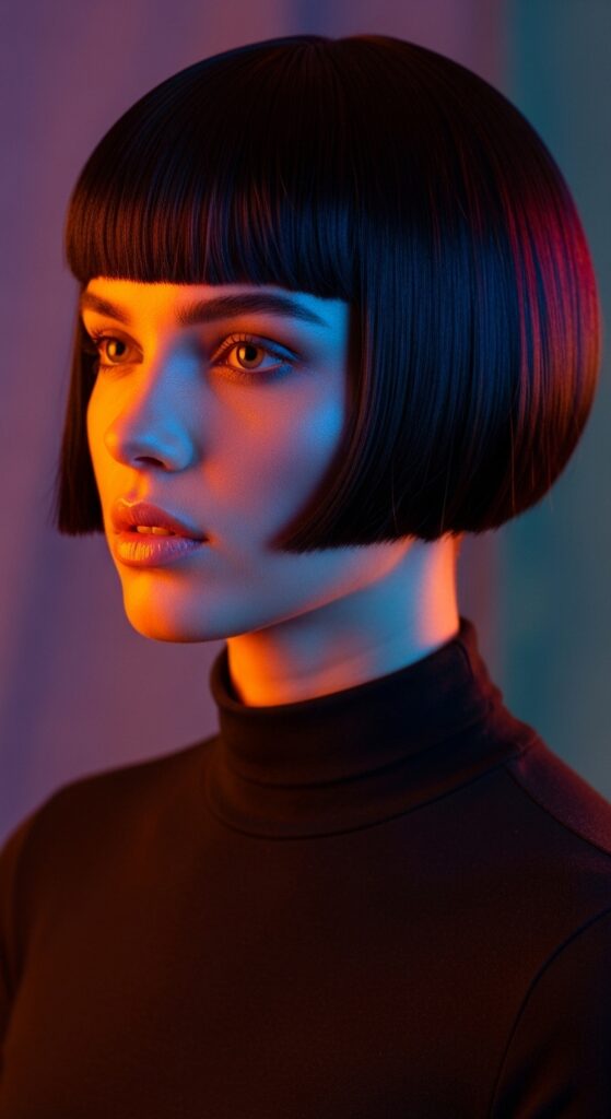 You can play with the bangs: blunt, wispy, or even arched. This cut is less about hair and more about owning your silhouette and features with fearless confidence.
