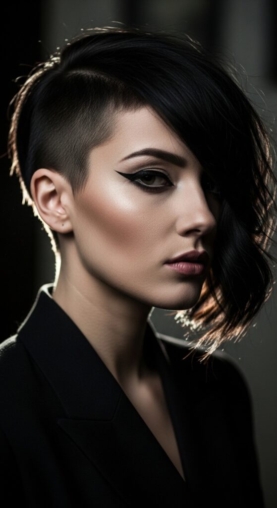 You can play with the contrast: a deep side part, a design shaved into the undercut, or leaving one side longer than the other. It’s a close cousin to the vampire haircut—dark, cool, and magnetic.