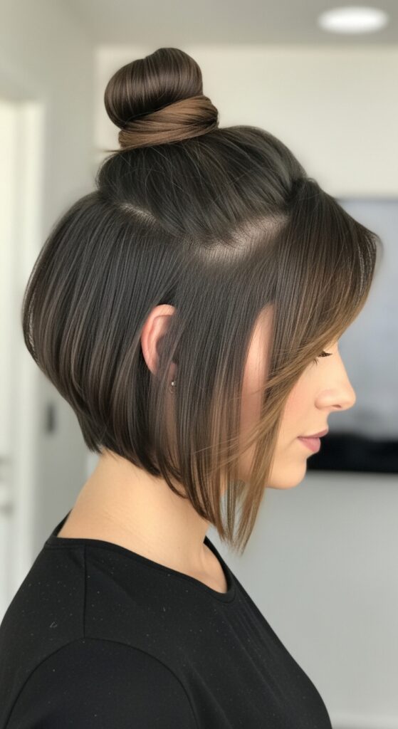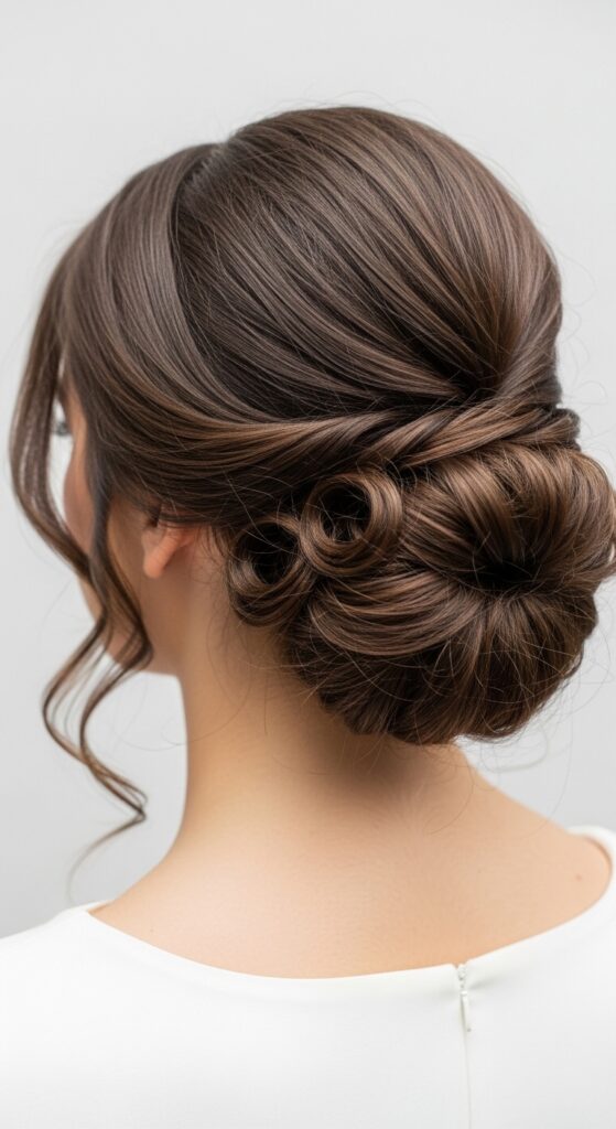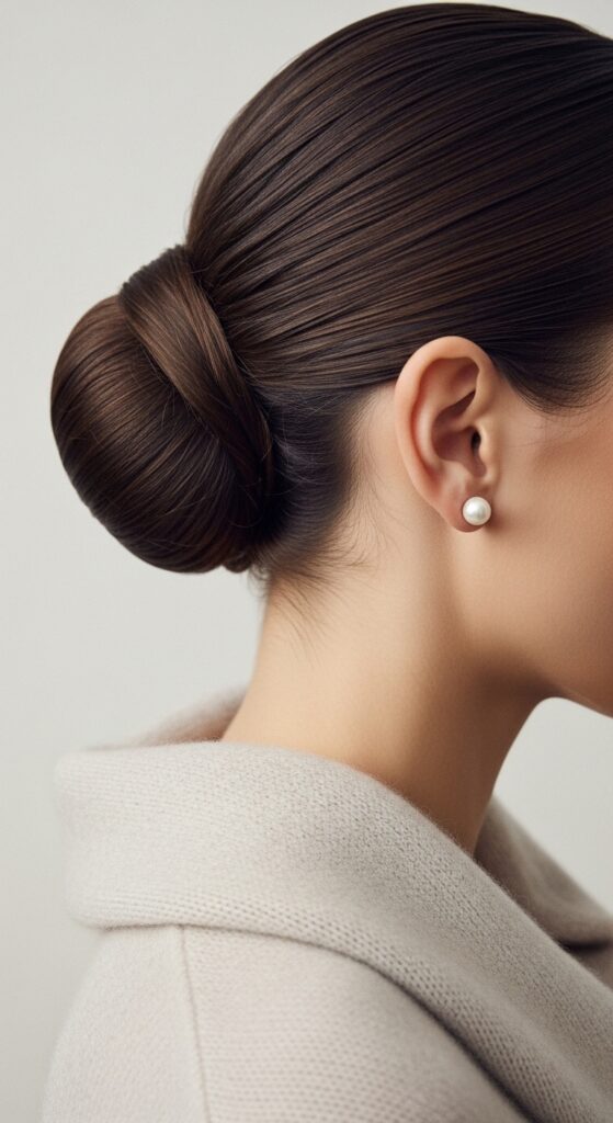 This is the essence of old money hair and quiet luxury bob energy, but in an updo. It’s timeless, elegant, and whispers good taste. It’s perfect for weddings, fancy dinners, or when you want to feel exceptionally polished.