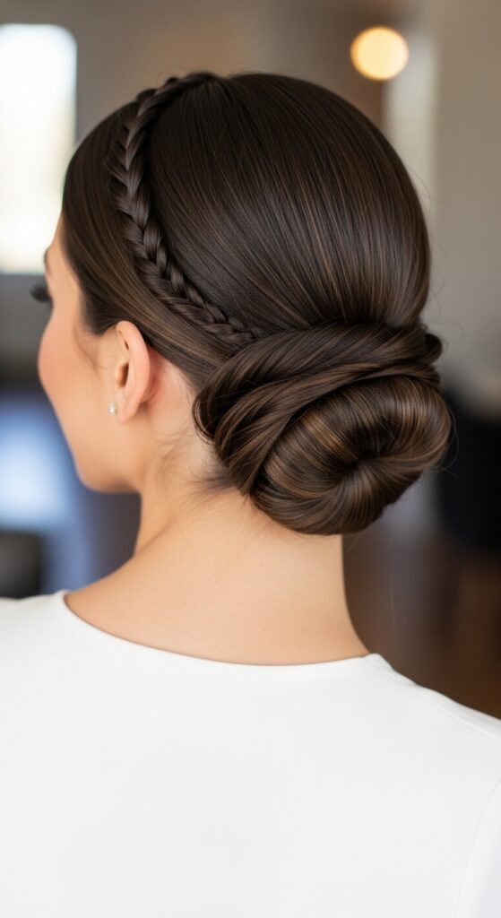 Make your high ponytail. Create a small three-strand braid from a thin section of the tail. Wrap the bun as usual, then take the braid and wrap it around the base, pinning it underneath. It’s a subtle, beautiful detail.