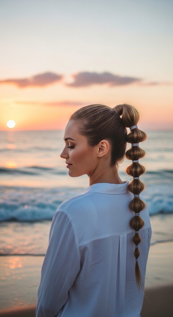 It’s eye-catching but literally takes two minutes. The bubbles make your hair look thicker, and the style keeps the hair off your back completely. Perfect for a summer festival or a day at the pool.