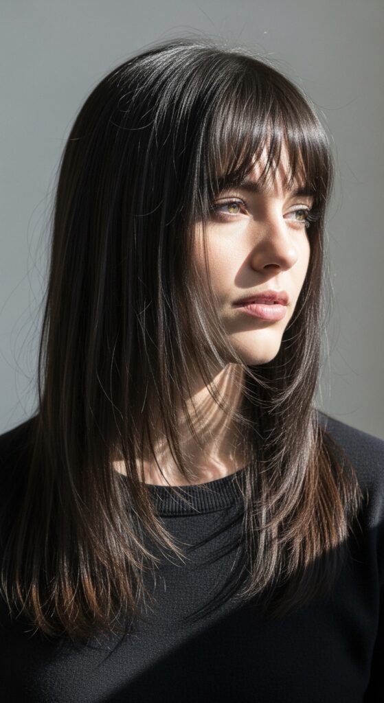 Don’t let the name scare you. The vampire haircut is all about sharp, severe lines that make your straight hair look like liquid silk. Think razor-sharp ends and a lot of weight.