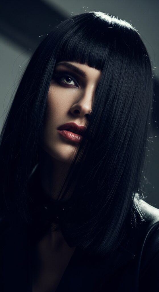 It’s one of those romantic goth hairstyles that feels both vintage and futuristic. If you have straight hair, this cut is basically made for you.