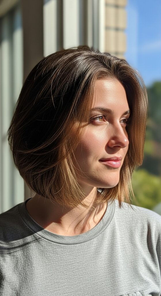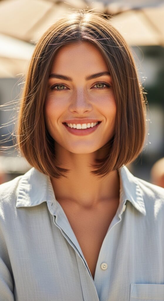 This is the bob that says “I have fun.” It’s a shoulder-length cut with the ends flipped outward just slightly. It’s playful but still polished.