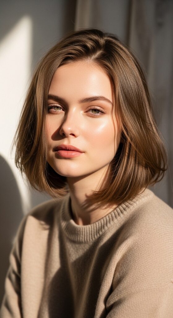 This is the haircut that screams “old money hair” without trying too hard. It’s a chin-length bob that’s blunt at the ends, but never harsh. It relies on your natural straight texture to look sleek and polished.