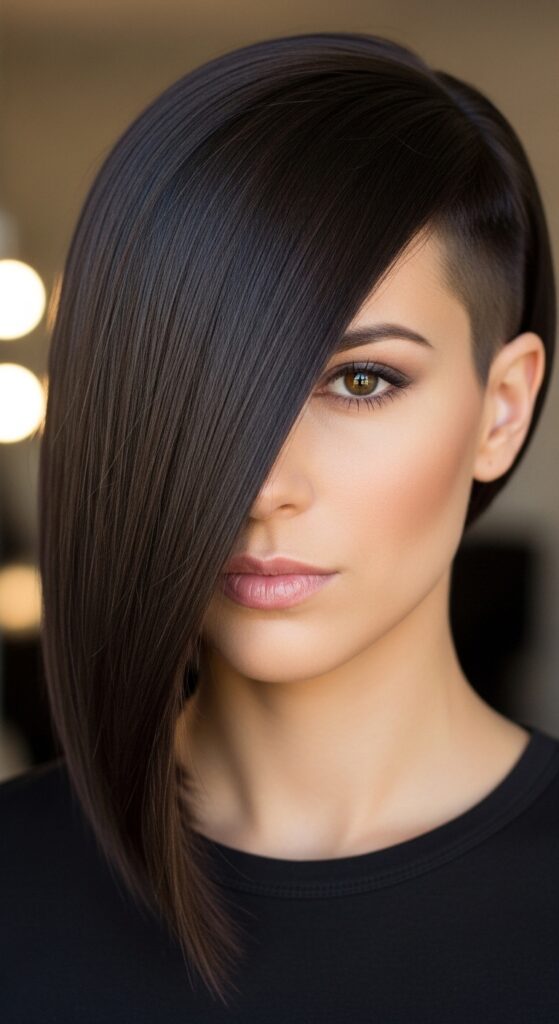 This cut is magic for adding interest to straight hair because the asymmetry creates instant dimension. One side is shorter, one is longer. It’s like having two hairstyles in one.