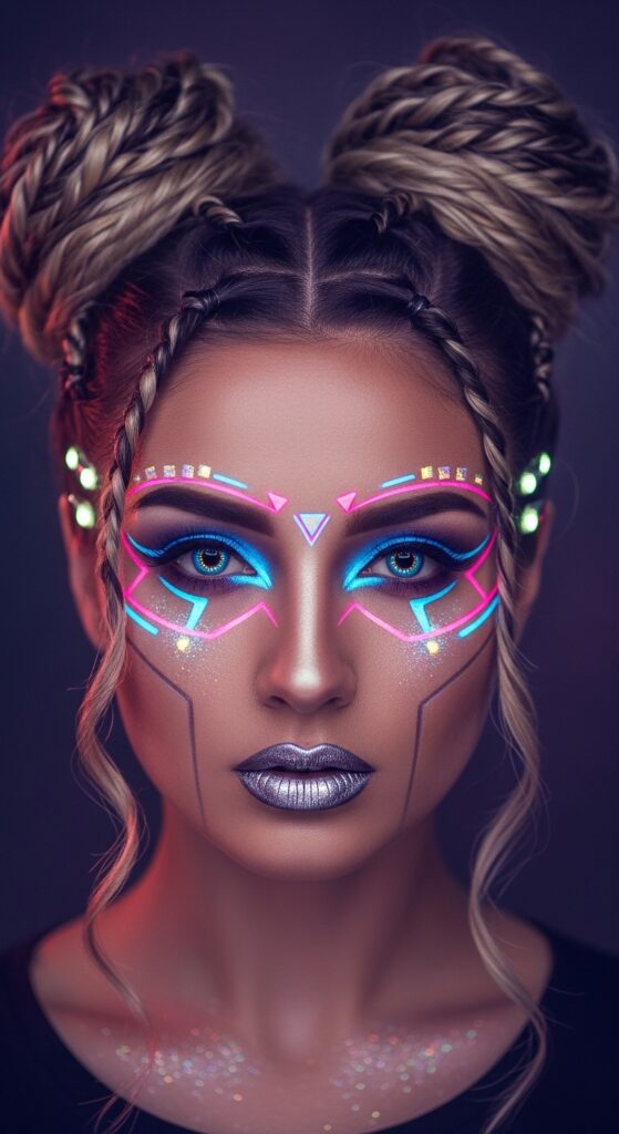 16. Glitchy Glam Space Buns