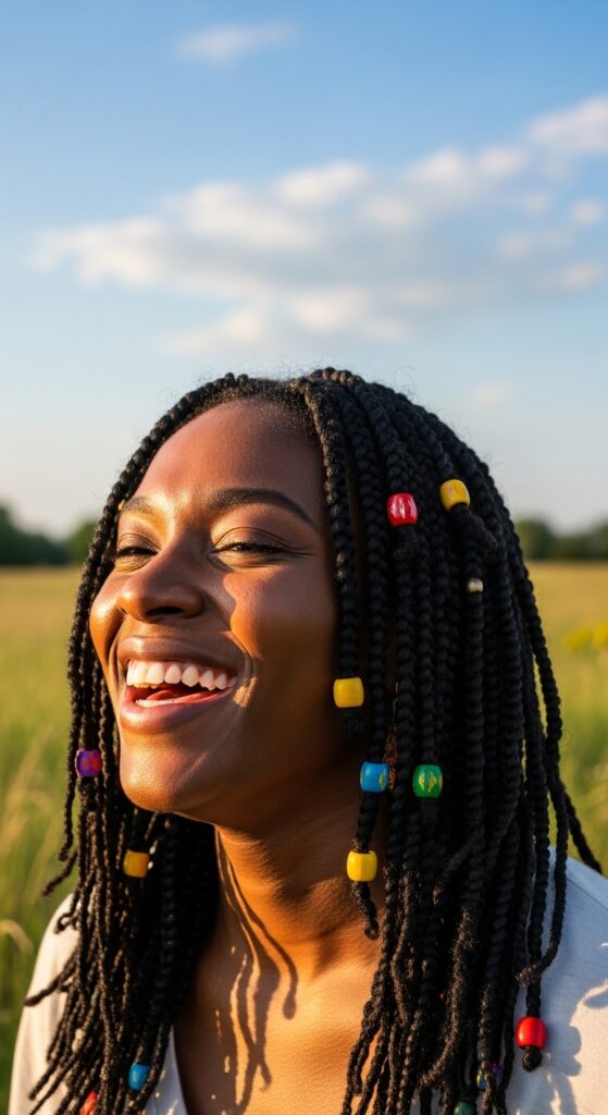 Senegalese twists are a timeless protective style. Adding boho beads instantly takes them from simple to boho-chic festival vibes. It’s a fun way to play with color without any commitment.