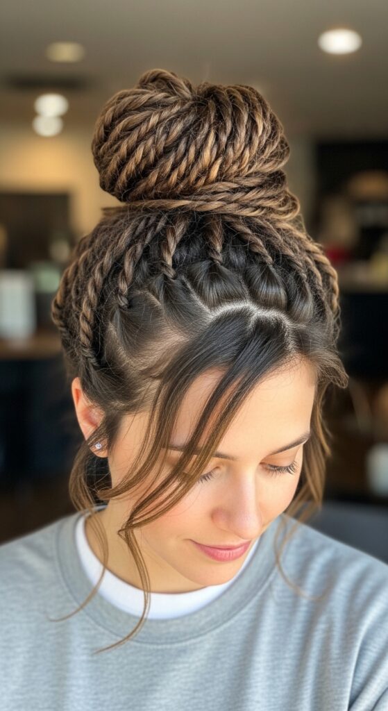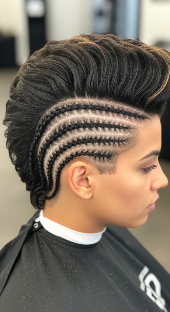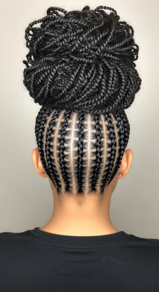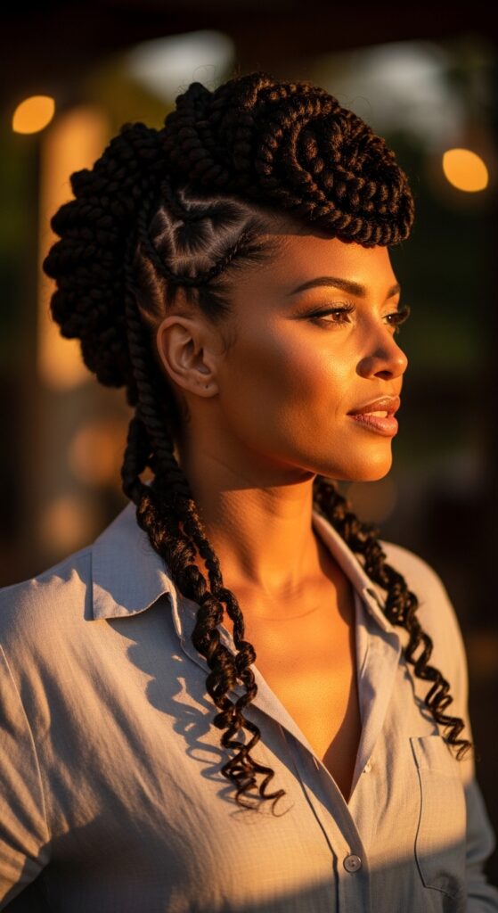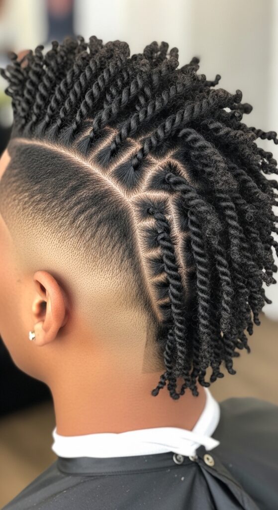 Ready to make a statement? The twisted faux hawk is pure confidence. It involves flat twisting or cornrowing the sides of your hair back, while leaving the middle section loose or in larger twists for height.
