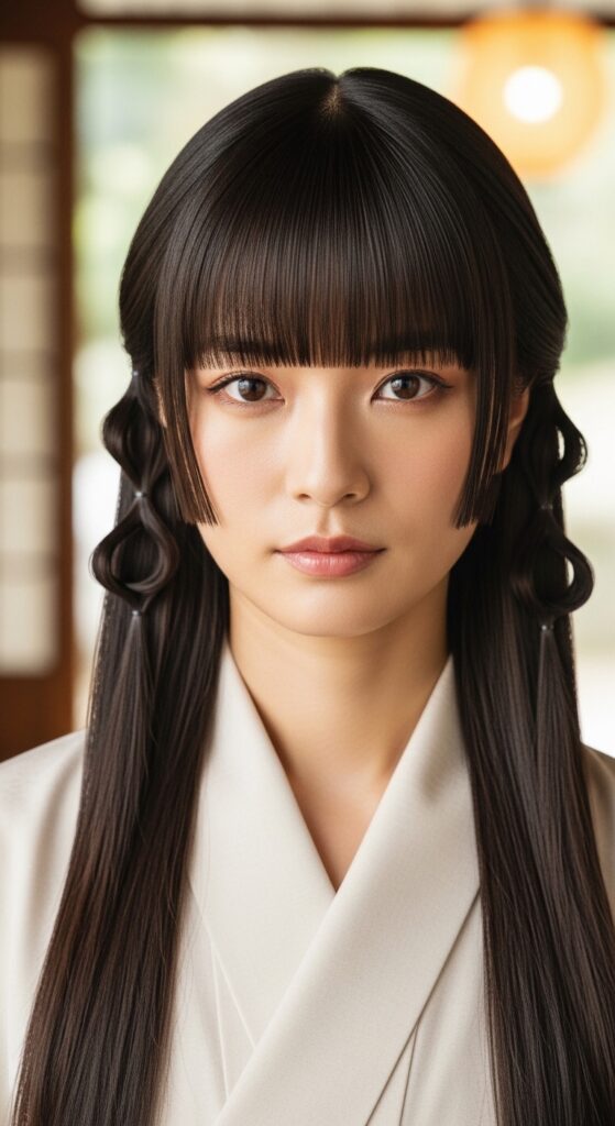15. Hime Cut with Blunt Twisted Bangs