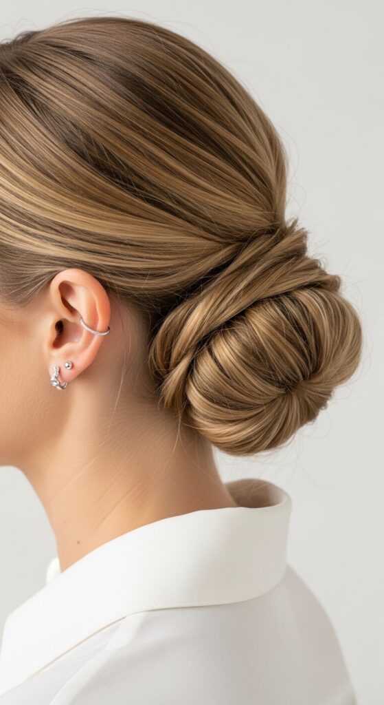 This is my go-to for “quiet luxury” hair. It’s that perfectly understated, expensive-looking style. A neat low bun becomes instantly more interesting when you leave out two twists to frame your face.