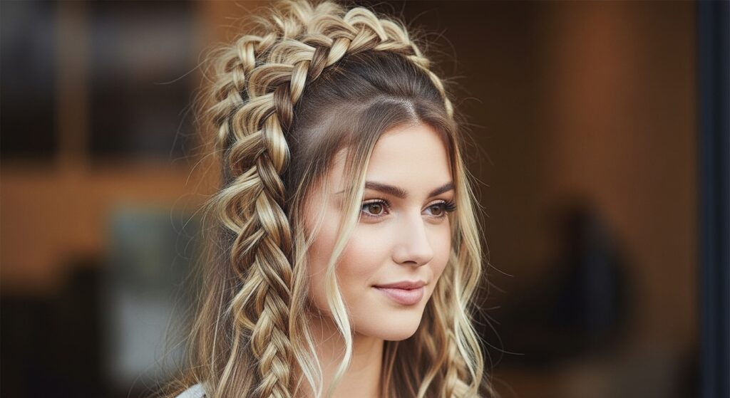 8. The Loose Braid Buffer: Split hair into two sections. Create a very loose, low-tension braid on each side. Then, use the Buff method to gather the tops of the braids into a high puff. This manages length and reduces tangles.