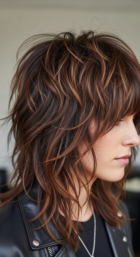 This is the ultimate cool-girl texture. Curtain bangs are the star of a full shag cut. Think lots of choppy layers, movement, and a carefree attitude.