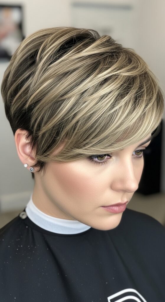It’s a playful, bold look that adds softness to an edgy cut. It requires a bit more styling but looks incredibly chic.