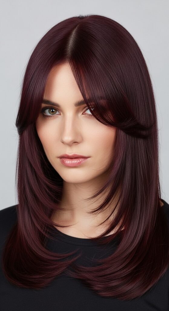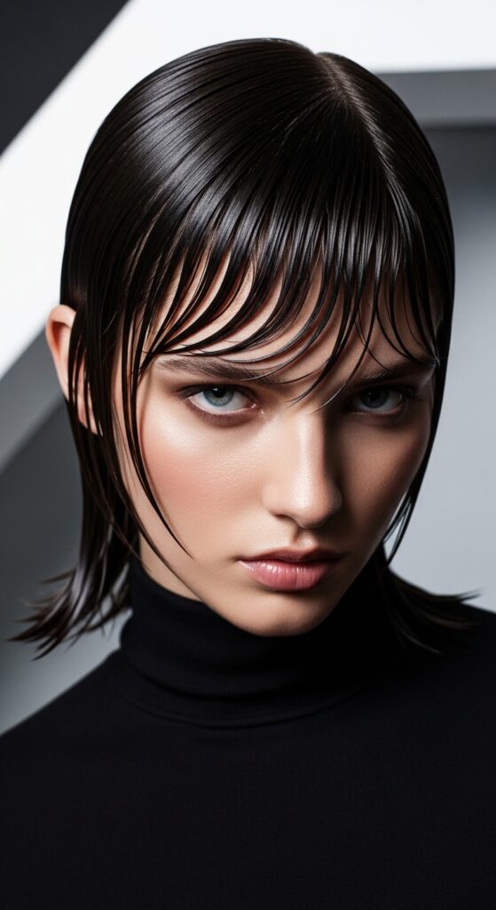 It’s a sleek, edgy take that feels very now. This style works best on straight or slightly wavy hair and makes a major statement.
