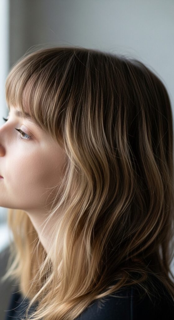 This is the look that started it all. It’s all about that “I woke up like this” texture. The bangs are longer, grazing the cheekbones, and blend seamlessly into the rest of your hair.