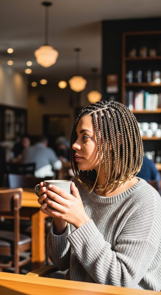 This is your perfect entry point. Think of a bob haircut, but made with soft, knotless braids. It’s chic, manageable, and gives off major “old money hair” vibes without the commitment of a real chop.