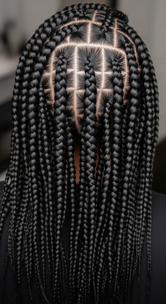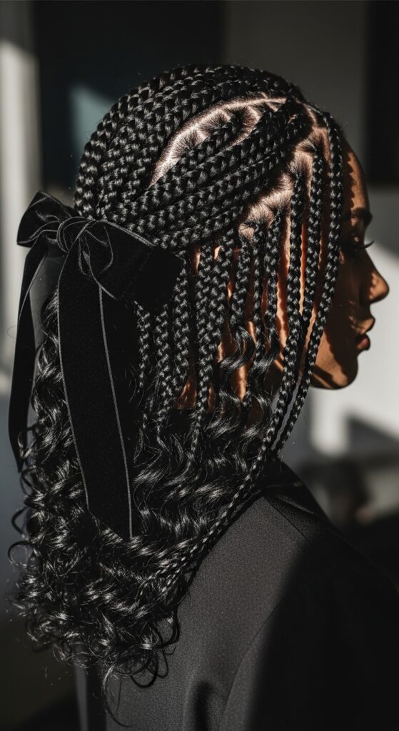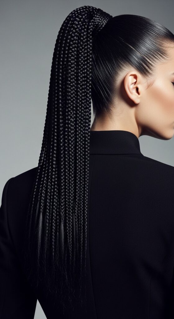 This style is stunning worn down, but also looks incredible in a sleek ponytail or bun. It’s a “quiet luxury bob” approach to braids—understated but impossible to ignore.