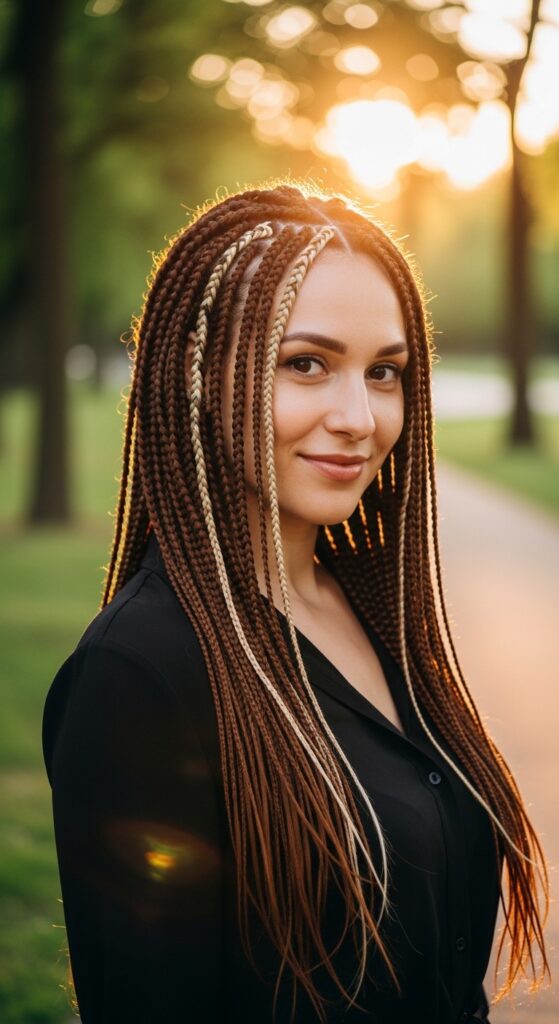 This style catches the light beautifully and adds incredible depth to your braids. It feels luxurious and lived-in, perfect for making a statement that’s still effortlessly cool.