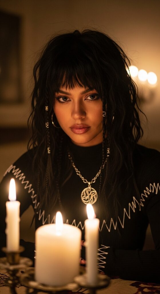 Embrace the “vampire haircut” trend—a dark, shaggy, and beautifully disheveled look. When done with braids, it creates amazing texture and a cool, undone vibe.