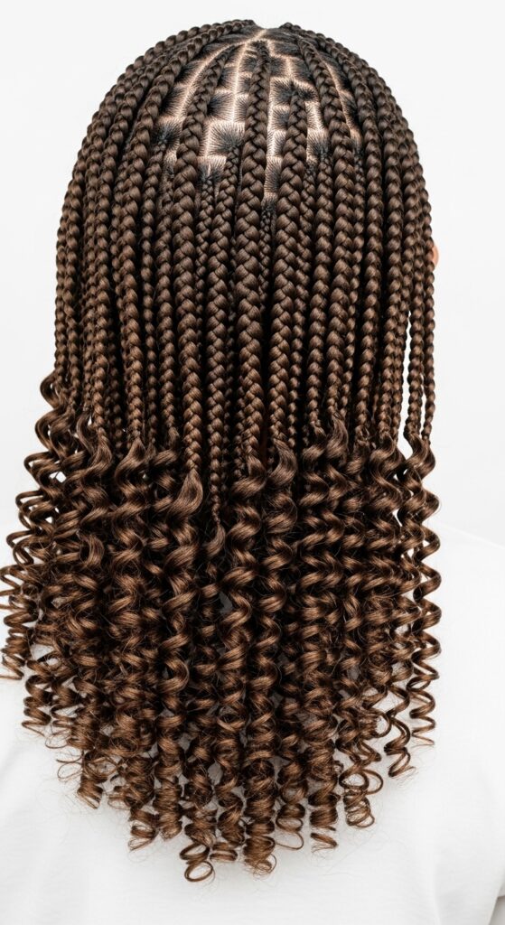 Why choose between straight and curly? This style gives you both. The braids are straight from the root, but the ends are transformed into bouncy, defined curls.