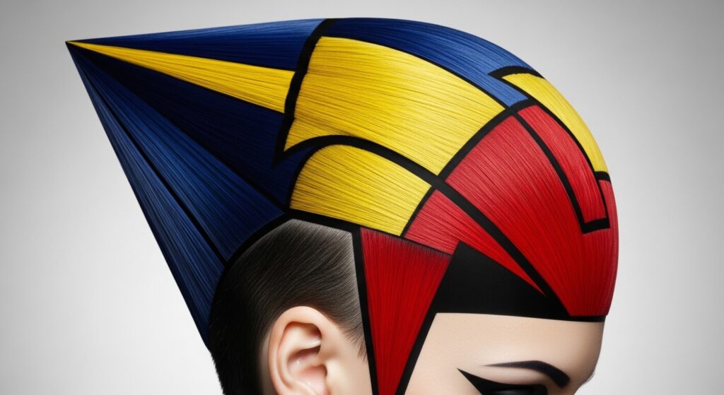 7. Geometric Panels: Instead of soft blending, defined, geometric blocks of light are painted in specific sections (e.g., a triangular section behind the ear).