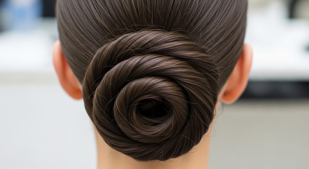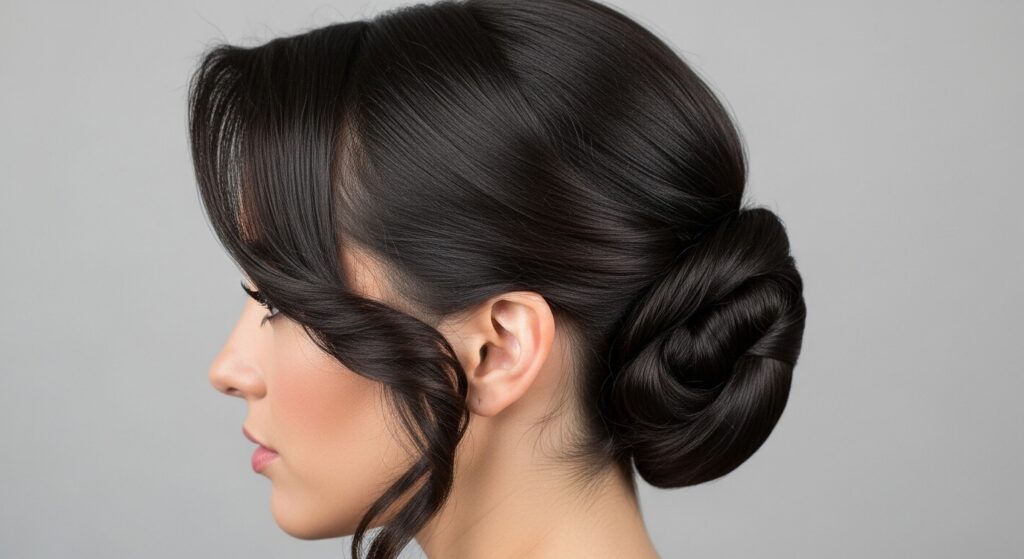 This is the undisputed queen of elongation. The classic sleek low bun, placed at the nape of the neck, is the epitome of minimalist elegance. The key is in the preparation: hair must be smoothed perfectly, often with the help of a strong-hold gel or serum, to eliminate any flyaways. When the bun is compact and sits flat against the head, it extends the line of the neck beautifully. It’s a perfect choice for formal events, the boardroom, or when you want an effortlessly chic look.