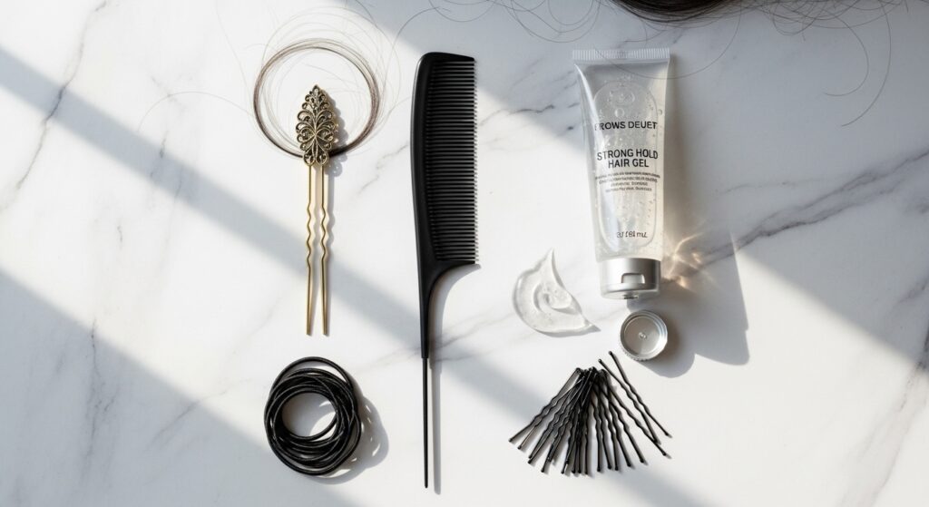 Invest in the Right Products: A strong-hold smoothing gel, a fine-tooth comb, and a texture spray for grip are essential. Bobby pins that match your hair color and strong, but small, elastics are a must.