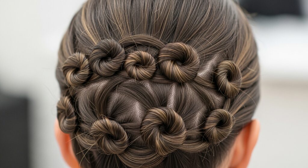 Elegant in its simplicity, a knotted updo involves literally tying sections of hair into flat knots and pinning them securely. This technique distributes hair evenly and flatly against the scalp. The result is a textured yet controlled look that has no unexpected bulk, ensuring a smooth silhouette from every angle. It’s an excellent way to add visual detail without sacrificing that all-important lengthening effect.
