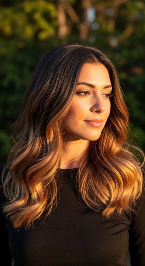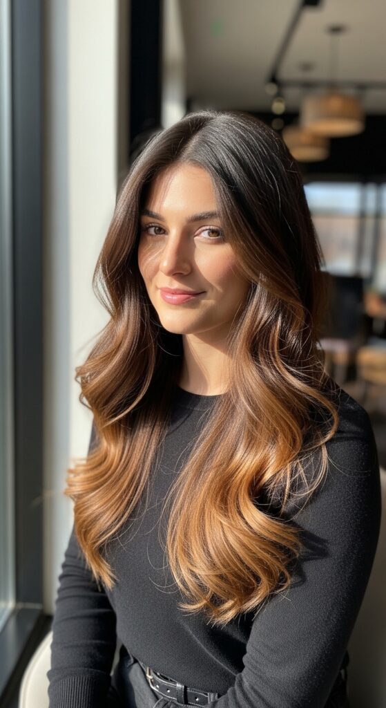 This is the ombre that started it all, but it’s back and better than ever. Think of your natural dark brown gradually turning into a sweet, warm caramel. The key is the blend. You want it to look like the sun kissed your ends, not like a highlighter ran out of ink. It’s the ultimate low-maintenance vibe. You can stretch your salon visits to every 4-6 months, and it grows out beautifully. Ask your colorist for a “lived-in melt” with a few face-framing highlights. This look pairs perfectly with soft waves or a simple blowout.